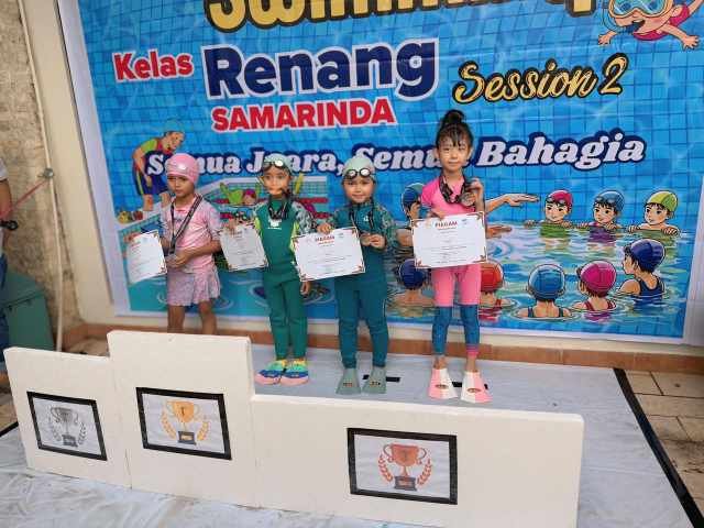 Keikutsertaannya dalam kompetisi renang usia dini tersebut, berbuah manis dengan raihan medali di empat kategori lomba.
