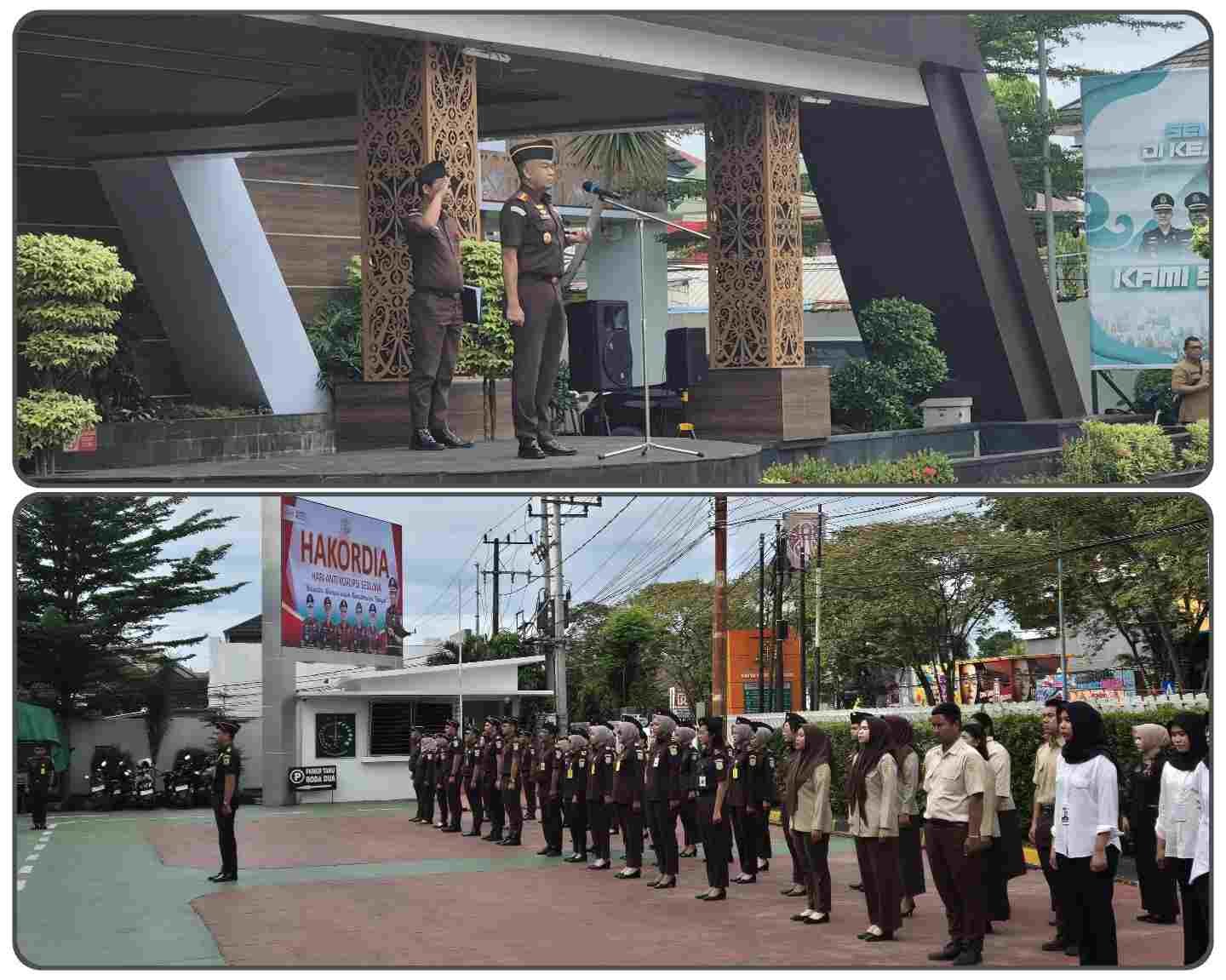 SAMARINDA, literasikaltim.com – Kejaksaan Negeri (Kejari) Samarinda menggelar upacara peringatan Hari Anti Korupsi Sedunia (HAKORDIA) 2025 di halaman kantor Kejari, Selasa (9/12/2025). Upacara yang berlangsung khidmat tersebut dipimpin langsung oleh Kepala Kejaksaan Negeri Samarinda, Firmansyah Subhan, S.H., M.H., selaku inspektur upacara. Seluruh pejabat struktural, jaksa, pegawai, hingga tenaga honorer hadir mengikuti kegiatan tersebut.