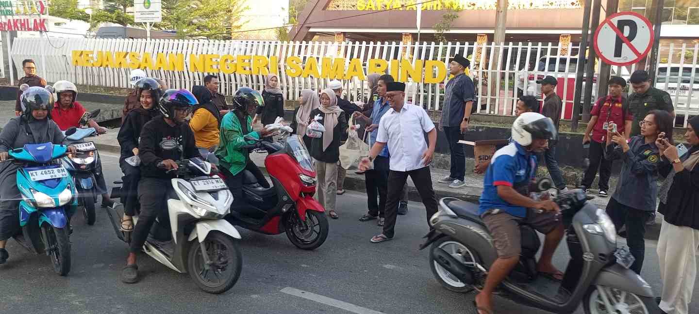 Dalam kegiatan tersebut, Kejari Samarinda membagikan sekitar 300 paket takjil kepada masyarakat yang sedang menjalankan ibadah puasa.