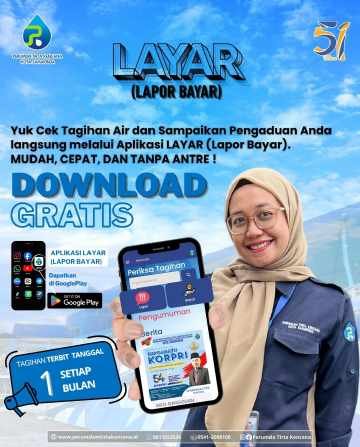 “Melalui aplikasi LAYAR, pelanggan dapat langsung mengecek tagihan air, menyampaikan laporan, hingga memperoleh informasi gangguan layanan tanpa harus datang ke kantor, dan ini bentuk komitmen kami memberikan pelayanan yang lebih mudah, cepat, dan responsif,” ujar Taufiq.