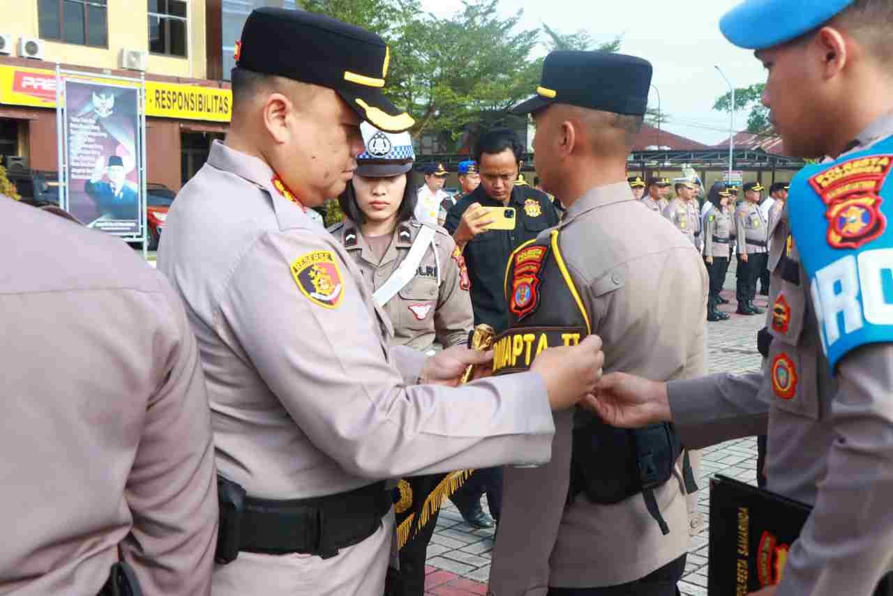 Sebagai bentuk simbolis peluncuran, Kapolresta Samarinda menyematkan ban lengan Pamapta kepada sejumlah personel perwakilan satuan, disertai doa bersama sebagai tanda komitmen moral seluruh jajaran.