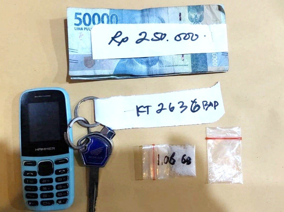 “Dan, setelah dilakukan pengecekan dan penggeledahan, kami berhasil menemukan barang bukti berupa satu plastik klip berisi narkotika jenis sabu seberat 1,06 gram bruto yang disembunyikan di genggaman tangan kiri tersangka,” jelasnya.
