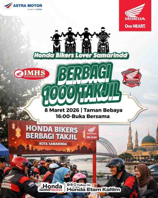 Keseruan semarak Bulan Suci Ramadhan yang disiapkan Astra Motor Kalimantan Timur 2 akan berlanjut, dengan aksi Berbagi 1000 Takjil pada keesokan harinya (08/03/2026) bersama puluhan Honda Community dibawah naungan IMHS.