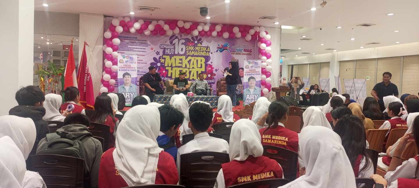 Perayaan HUT ke-16 SMK Medika Samarinda dirangkai dalam sejumlah kegiatan hiburan dan edukasi yang digelar selama tiga malam berturut-turut. Pada Selasa (13/1/2026) malam, panggung dibuka dengan kehadiran vokalis band Goliath, Ari Goliath, artis ibu kota yang tampil di hadapan ribuan pelajar dan warga Kota Samarinda.
