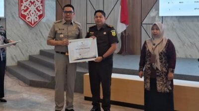 Foto: Penyerahan Penghargaan dari Wali Kota Samarinda H. Andi Harun dan di terima Kepala Kejaksaan Negeri Samarinda di wakili Kasi Intel Kejari Samarinda Bara Mantio Irsahara SH MH, belum lama ini.